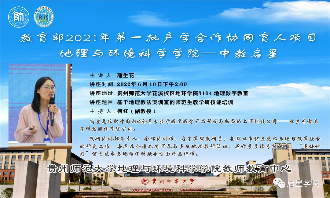 第一站我們來到貴州師范大學(xué)。6月10日,中教啟星蒲生花老師受邀到貴州師范大學(xué)地理與環(huán)境科學(xué)學(xué)院,參加中教啟星與貴州師范大學(xué)產(chǎn)學(xué)合作協(xié)同育人項(xiàng)目的啟動(dòng),這個(gè)項(xiàng)目也是目前產(chǎn)學(xué)合作項(xiàng)目的第一講。