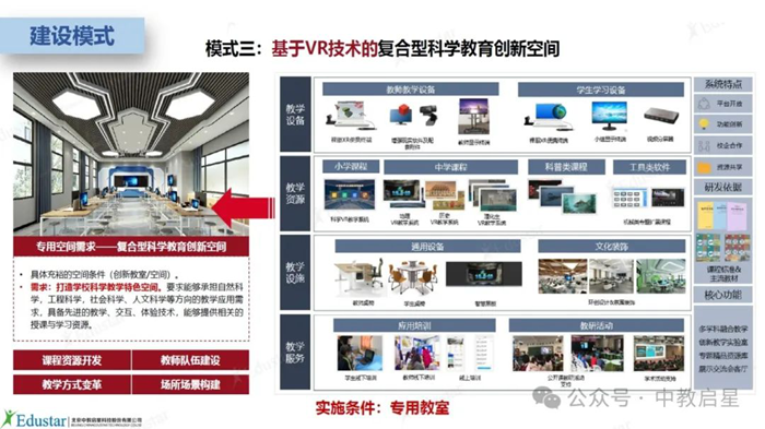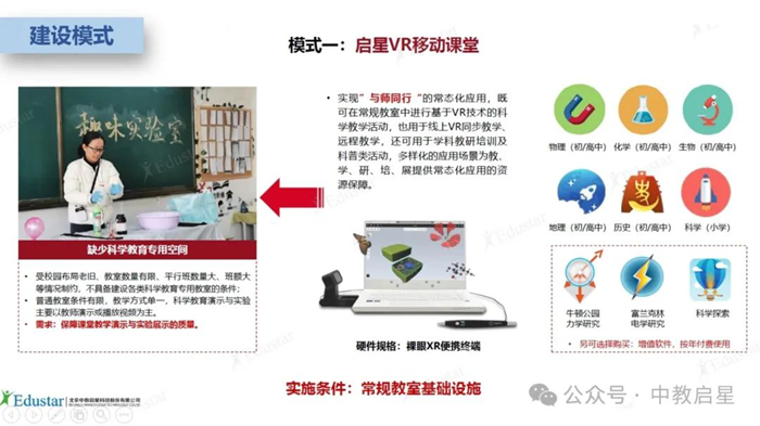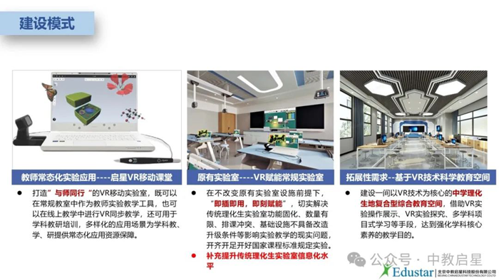 依托中教啟星十幾年教育資源開發(fā)的能力與技術成果,參照學科教室功能室的項目建設經驗,中教啟星VR+科學教育解決方案面向三大應用場景,打造三大模式全方位助力學校開齊開足開好國家課程標準規(guī)定科學實驗課程。