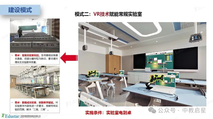 該模式通過引入VR技術,補充和提升傳統(tǒng)理化生實驗室的信息化水平,使傳統(tǒng)實驗室具備更先進的實驗演示和互動功能,增強學生的實驗體驗和學習效果。