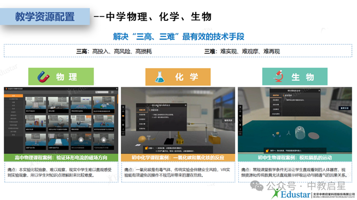 在教學資源配置方面,中教啟星展現(xiàn)出了強大的資源整合和創(chuàng)新能力。其解決方案覆蓋了國家課標同步學科資源,涵蓋小學科學及拓展資源,中學物理、化學、生物、地理、歷史等學科,為各學科的科學教育提供了全面而系統(tǒng)的支持。