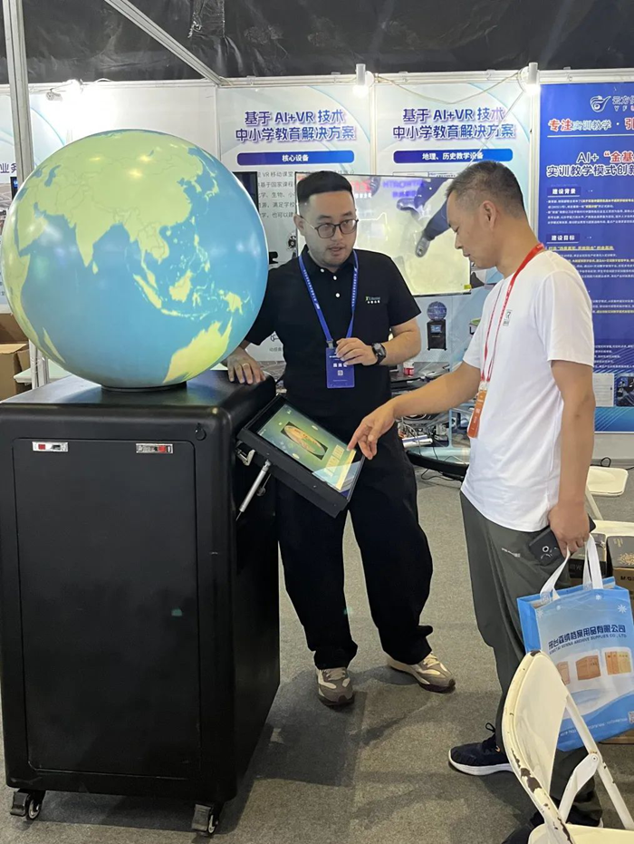 此次展示的數字化地理教室中,數字星球系統融合了球幕投影、多媒體交互、數字化資源等多種技術,將地球、宇宙等宏觀地理知識以動態、立體的形式呈現在球形屏幕上。教師能夠通過系統,全方位、多角度展示地球的地理現象、時空演化、大氣環流等知識,打破了傳統平面教學的局限,以極具直觀立體的視覺效果,激發學生對地理知識探索的熱情,助力他們更深入地理解宏觀地理現象和原理。