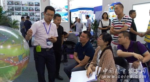 展覽現場,在人群中聚集的中教啟星展臺,當看到眼前的數字星球系統,將地理上的氣壓、氣流、山脈、海洋等給立體的呈現出來時,這景象讓參觀者嘆為觀止�!拔覀兡菚r候學地理很痛苦,感覺很抽象,如果能像現在這樣有個數字星球系統,立體的將知識點展現出來,我地理應該不會那么差吧。”一參展者接受采訪時說。