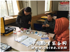 下午,老師們根據(jù)自己的興趣愛(ài)好,對(duì)上午所學(xué)課程進(jìn)行選擇性練習(xí)。趣味數(shù)學(xué)項(xiàng)目中的博弈棋盤(pán)吸引了眾多老師的眼球,通過(guò)李主任的悉心講解,老師們了解了比賽規(guī)則與方法,領(lǐng)悟了博弈棋盤(pán)的精髓。而科學(xué)探究項(xiàng)目中的傳感器使用與數(shù)據(jù)分析也讓老師們大開(kāi)眼界,通過(guò)仔細(xì)的思考與實(shí)踐,巧妙地將生活中常見(jiàn)的溫度、濕度數(shù)據(jù)進(jìn)行了采集與分析。老師們紛紛表示,通過(guò)以后的實(shí)踐與鉆研,一定能開(kāi)發(fā)出更加吸引學(xué)生的活動(dòng)課程。太陽(yáng)能、風(fēng)能、氫能等探究活動(dòng)讓老師們對(duì)新能源有了全新的認(rèn)識(shí),極大激發(fā)了老師們學(xué)習(xí)本門(mén)課程的興趣,也增強(qiáng)了教學(xué)信心。