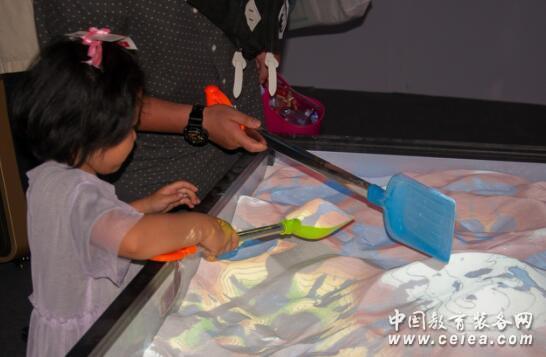 AR地理沙盤因使用簡單,效果直觀,每次展會都會成為人氣最旺的展項之一,其優點在中小學教育地理教學上尤其明顯,該階段學生求知欲旺盛,好奇心濃重,通過“堆沙子”來感受地形地貌的變化,在輕松的氛圍中反而能牢牢地掌握相關的知識點,真正體現了羿飛教育“羿教易學”的產品理念。