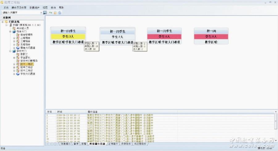 區域綁定設置,通過設置可考生所在學校信息與對應的通道區域進行綁定,當有人員進出時就會實時顯示該學校考生已到人數,并用不同的顏色表示某學校考生人數已到齊、未到齊、全部未到。