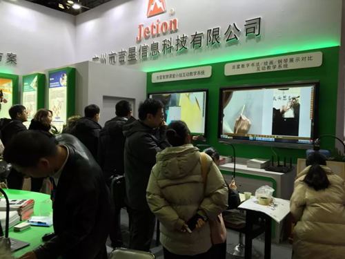 8日剛開展不久,吉星展區即爆滿,吉星智慧課堂產品吸引了全國各地的教育部門及學校領導等前來參觀、交流。