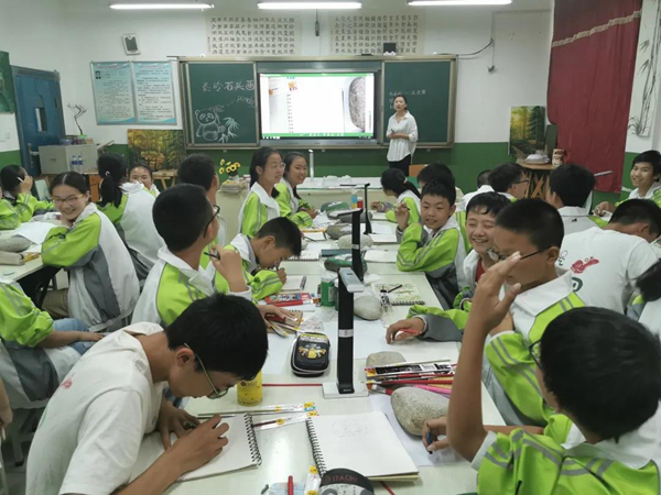 在強交互專遞課堂中,即使相隔千里,兩地課堂能夠共享同樣的美育課程內容。