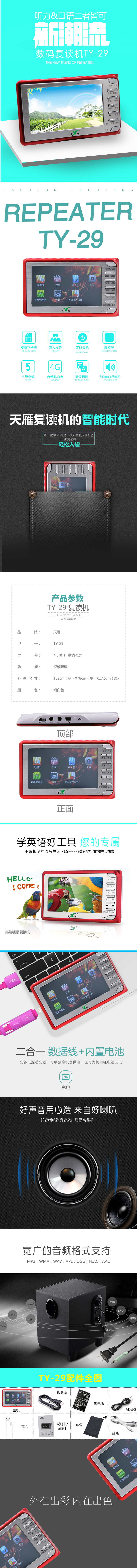 44.1/64K取樣與碼率/MP3格式高保真錄音。內藏麥克風,錄音文件可以直接復讀,跟讀,變速。