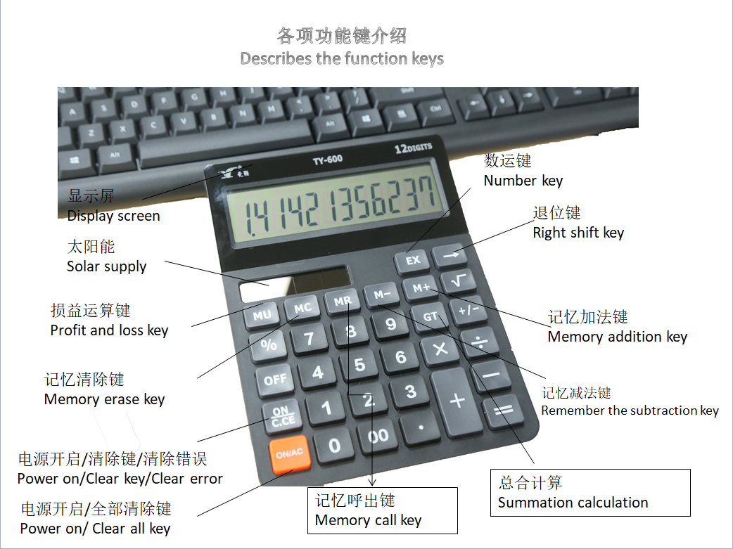 TY-600雙電源12位數臺式計算器