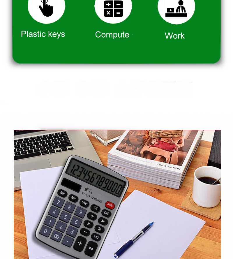 TY-615雙電源12位數金屬面板臺式計算器