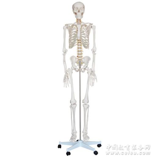 這款經(jīng)濟(jì)型的、真人大小的、關(guān)節(jié)相連的塑料模型是基礎(chǔ)解剖教學(xué)的理想模型,物美價(jià)廉。手臂和腿部可拆下供研究。顯示神經(jīng)分支、脊椎動(dòng)脈和腰椎間盤等。頭顱含可活動(dòng)的下巴、可移動(dòng)的頭顱蓋、骨縫線。能夠非常直觀立體的展示人體全身骨骼結(jié)構(gòu),讓學(xué)生們有興趣學(xué)習(xí)骨頭的名稱,使學(xué)生、醫(yī)生和其他對(duì)人體骨骼模型感興趣者感到滿意。 人體骨骼模型的構(gòu)造: (一)頭顱骨:由22塊頭骨組成整顱,顱蓋橫切,取去后示顱內(nèi)諸結(jié)構(gòu),下頜骨可以活動(dòng)。 (二)脊柱:由七個(gè)頸椎,十二個(gè)胸椎,五個(gè)腰椎,一塊骶骨,一塊尾骨及廿三個(gè)椎間軟骨組成。并示頸、胸、腰、骶四個(gè)生理彎曲。 (三)胸廓:由24塊肋骨、一塊胸骨,肋軟骨與脊椎胸椎部分連接,構(gòu)成胸廓。 (四)骨盆:由骶骨、尾骨和兩塊髖骨組成。 (五)上肢骨:由64塊骨組成,肩帶部分的肩胛骨和鎖骨固定在胸廓上,上肢的游離都可拆卸,肩、肘、腕等關(guān)節(jié)均可自由活動(dòng)。 (六)下肢骨:由62塊骨組成,下肢帶固定構(gòu)成骨盆,下肢游離都可以拆卸,髖、膝等關(guān)節(jié)均可自由活動(dòng)。 人體骨骼模型安放在牢固的16英寸金屬架上。用PVC制成,可水洗,不破碎,附防塵罩 尺寸: 170CM。 包裝: 100x46x28CM, 1件/箱, 13KG