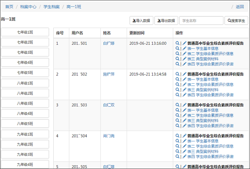 e人e表檔案系統(又名“一人一表系統”)要從根本上解決人員檔案管理不通用的難題,系統憑借獨具特色的表單設計模型,定位為一款以“人”為中心的通用人員檔案系統。該系統成功整合了檔案定制、表單設計、記錄對象管理、數據源管理、統一輸入和輸出等多項技術,為學校和教育局提供了一個用途廣泛的可視化檔案管理解決方案。系統由制表、填表、報表三個子系統構成,可用于構建學生學籍管理系統、教職工檔案系統和學生綜合素質評價系統等多種檔案管理系統。