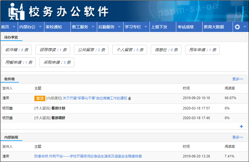 2.無論是站內信欄目,還是導航菜單欄,還是授權,都具有高度靈活的個性化定制功能,為“一套軟件,千校千面”提供了無限可能;