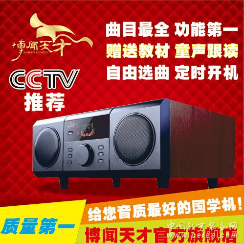 產品詳細介紹博聞天才聽讀機是一款全新的胎教早教國學學習產品,由幾十位國際教育專家歷時五年,根據孩子的學習規律研發的一款高音質產品。讓孩子可輕松學習國學經典,培養傳統文化,聽音樂,學習德育故事,發展語言能力,加強邏輯思維能力、想象能力及音樂感受能力,提高兒童智力。 主要特點: 隨著國學在國內認可度的不斷提高,國學培育機構、國學老師、國學書籍層出不窮。一種專門用于學習國學的科技產品,也成為市場呼之欲出的實際需要。 國學機便應運而生了。