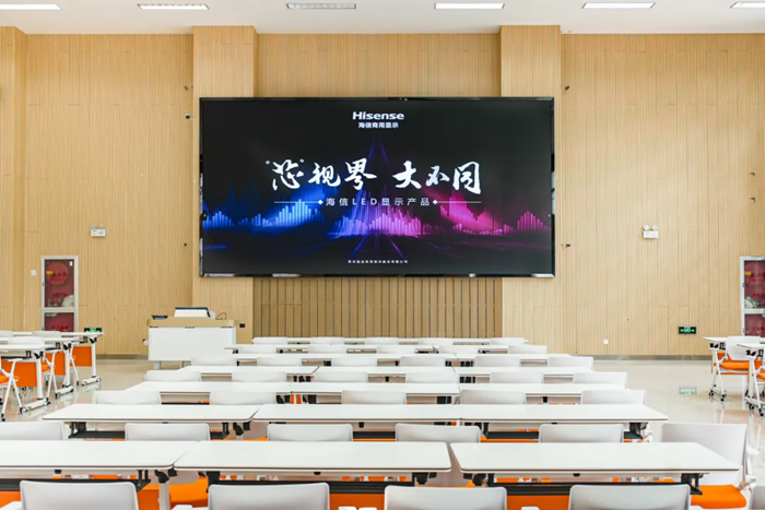 此外,在東營職業學院實訓教學樓階梯教室,則采用海信LED產品打造學校小型報告廳,用于學校會議及校園活動。