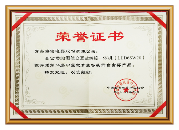 第74屆中國教育裝備展示會金獎產品—海信交互式觸控一體機(LED65W20)