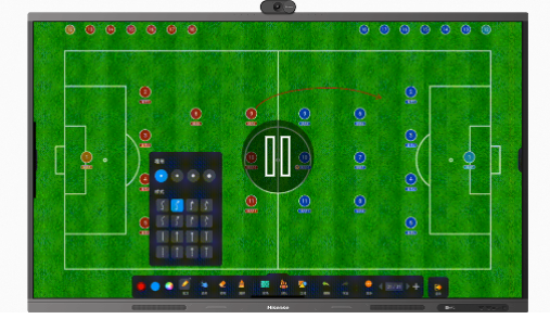 海信商用顯示此次推出的智慧足球戰術板,是行業內首個將會議平板大屏與體育戰術板打通的產品。只需要借助一臺海信Vision Hub智慧平板,就可輕松實現賽事分析、書寫評球、視頻看球等功能。