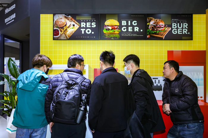 針對(duì)商業(yè)零售場(chǎng)景,海信商用顯示在現(xiàn)場(chǎng)搭建起汽車穿梭餐廳場(chǎng)景,室外區(qū)域采用戶外高亮Mini LED顯示屏,解決了傳統(tǒng)戶外液晶屏亮度不夠、對(duì)比度差、視角小、易黃化、壽命短、低溫下響應(yīng)速度慢等問題,可以更加清晰的展示廣告信息,清晰展示廣告信息,提升零售門店廣告信息的觸達(dá)率;在室內(nèi),采用3塊43英寸海信數(shù)字標(biāo)牌產(chǎn)品,極窄邊框設(shè)計(jì),美化門店形象,7*24小時(shí)的長(zhǎng)時(shí)間穩(wěn)定運(yùn)行能力,滿足門店的長(zhǎng)時(shí)間運(yùn)維。且具備網(wǎng)絡(luò)安全二級(jí)等保認(rèn)證,避免網(wǎng)絡(luò)攻擊和非法投屏,保護(hù)商家利益。借助海信信發(fā)智控CMS系統(tǒng),實(shí)現(xiàn)各類零售場(chǎng)景的統(tǒng)一管理、統(tǒng)一運(yùn)維,更能提升顧客體驗(yàn),吸引客流。