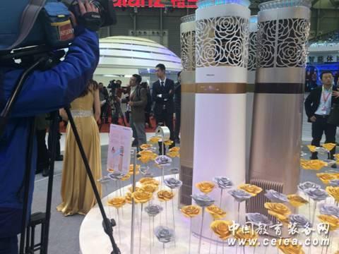在海信空調展區最吸引人的還是"炫轉"空調的外觀,"我最喜歡的香奈兒山茶花,居然上空調了,這款空調的外觀設計,高端大氣上檔次!回去讓老公給我們的新房添一個山茶花空調!"參加上海家博會的胡女士高興的說!