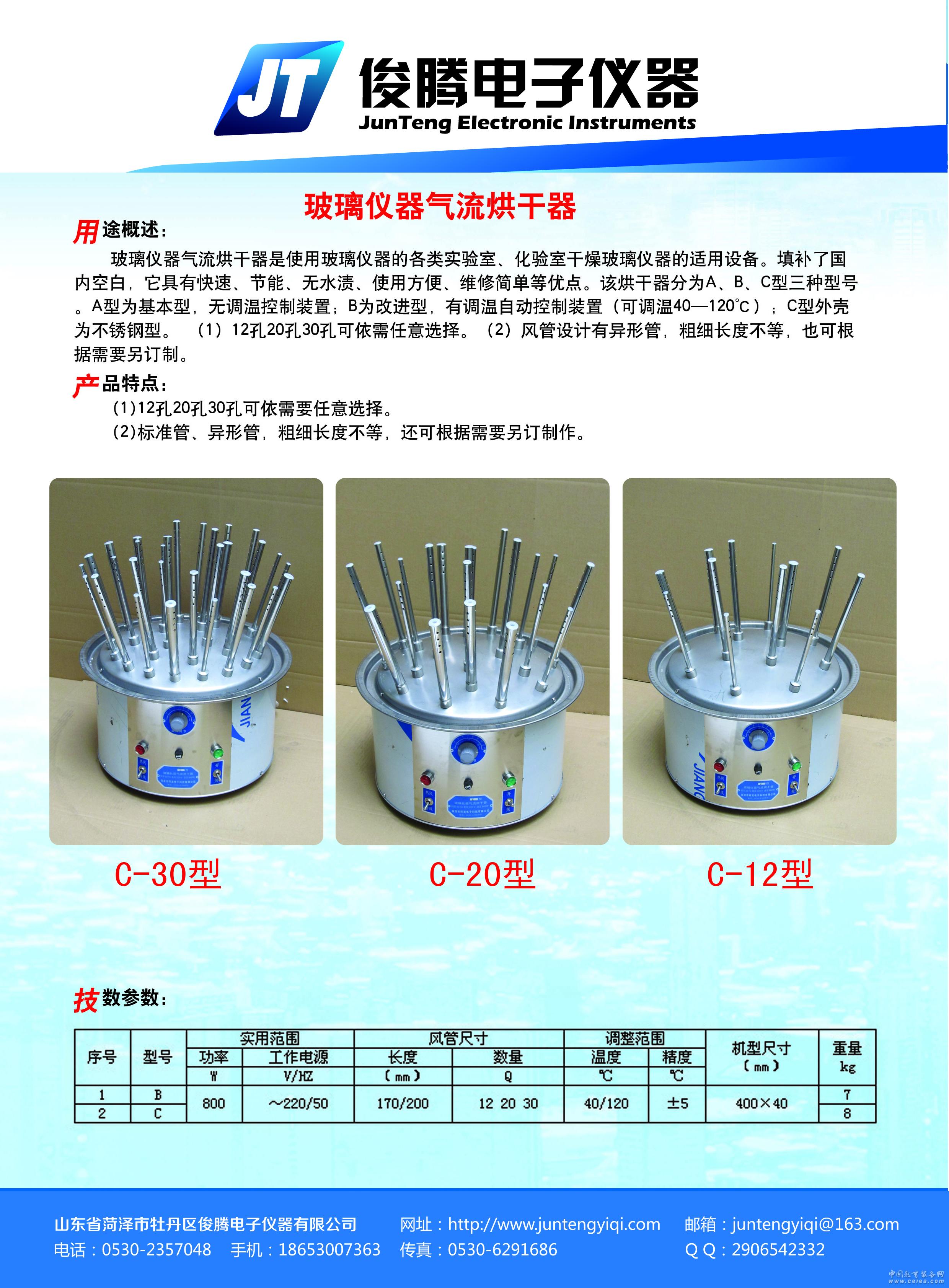 產品詳細介紹玻璃儀器烘干器BKH-C用途特點: 適用于使用玻璃儀器的各類實驗室、化驗室,具有快速、節能、無水漬、使用方便、維修簡單等優點。 ●12孔、20孔、30孔可供選擇。 ●風管為異形管,直徑、長度可根據需要訂制。 ◆B型:外殼采用優質碳素結構鋼冷軋板,表面靜電噴塑。 ◆C型:外殼不銹鋼材質(SUS標準)。 玻璃儀器烘干器BKH-C技術參數: 型號 規格 功率(W) 電源(V/Hz) 風管數量(n) 風管長度(mm) 溫度范圍(℃) 控溫精度(℃) 外形尺寸(mm) 重量(kg) BKH-C 12 800 220/50 12 170/200 40~120 ±2 Ф400/400 6 20 20 30 30 |