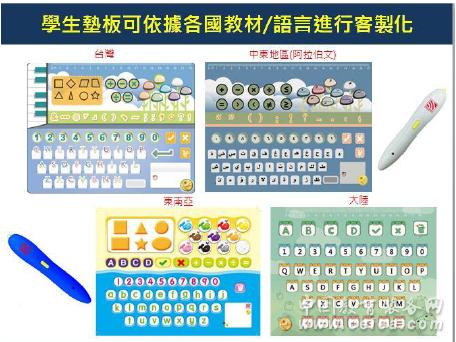 產品詳細介紹1.擁有核心技術專利保護 對象感知點播技術; 多點播筆感知互動技術: 專利: 利用光學讀取裝置之數據處理系統及其相關數據處理方法及操作方法及計算程序產品(TW/CN/HK/US/JP)