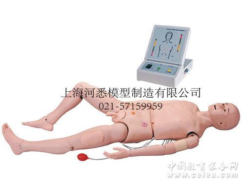 高級心肺復蘇基礎護理訓練模擬人是集CPR心肺復蘇和基礎護理訓練于一體的整體模擬人,身高170cm,雙眼可眨動,關節靈活,可實現多種體位,滿足操作需要,解剖標志明 顯,可觸及兩乳頭、肋骨、胸骨及劍突,胸部富有彈性,外皮可打開,能觀察到真實大小的肋骨、雙肺、心臟、肝臟、胃(透明)等器官。