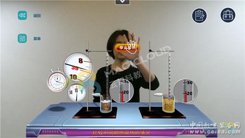 AR實(shí)踐探究實(shí)驗(yàn)室,綜合應(yīng)用AI和AR技術(shù),通過(guò)3D建模虛擬再現(xiàn)真實(shí)的實(shí)驗(yàn)場(chǎng)景,借助先進(jìn)的體感交互設(shè)備Kinect進(jìn)行虛實(shí)互動(dòng),將真實(shí)的老師與虛擬仿真的實(shí)驗(yàn)器材結(jié)合到一個(gè)畫(huà)面里,老師實(shí)現(xiàn)無(wú)需佩戴任何體感設(shè)備,純手勢(shì)就可以進(jìn)行實(shí)驗(yàn)互動(dòng)教學(xué)。AR實(shí)踐探究實(shí)驗(yàn)室覆蓋物理、化學(xué)、生物等學(xué)科,適用于中學(xué)物理實(shí)驗(yàn)室、化學(xué)實(shí)驗(yàn)室、生物實(shí)驗(yàn)室等。