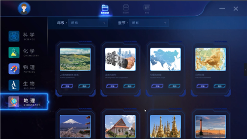 地理學科內容包括自然地理與人文地理,與學科教材配套,將課本知識點涉及的內容以3D模型、視頻、圖片、動畫等形式展示出來,教師可根據自己教學環節的設置使用配套的教學素材,引導學生從現實生活的經歷和經驗出發,激發對地理的興趣,幫助學生掌握基本的地理事實、概念和技能,使學生了解地理知識的功能與價值。