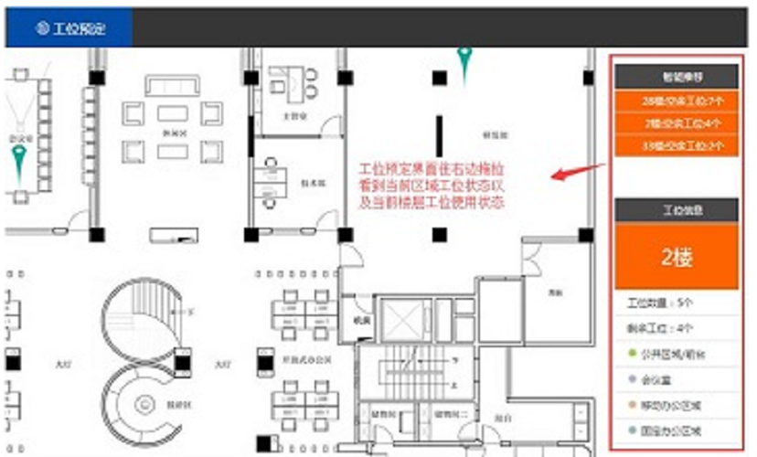 n 實時地圖與導航技術,通過管理平臺中辦公區內自動導覽技術,自動引導您前往預定或指定的辦公區域。