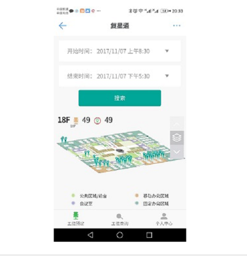 n 員工需要在系統(tǒng)規(guī)定時(shí)間內(nèi)進(jìn)入預(yù)約的辦公空間進(jìn)行掃碼確認(rèn),系統(tǒng)自動(dòng)化處理,同步標(biāo)記空間占用狀況,自動(dòng)開啟預(yù)約空間電源和區(qū)域照明,自動(dòng)設(shè)置固定電話分機(jī)和網(wǎng)絡(luò)聯(lián)通。自動(dòng)開啟智能體感系統(tǒng),根據(jù)人員活動(dòng)情況開啟/關(guān)閉電源及照明,節(jié)省不必要能源消耗。如在規(guī)定時(shí)間內(nèi)沒有進(jìn)行掃碼確認(rèn),系統(tǒng)自動(dòng)將預(yù)約空間釋放,以便其他人預(yù)約。
