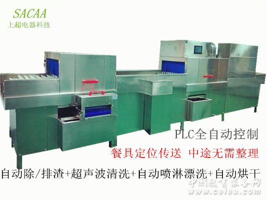 產品詳細介紹 我公司結合先進的超聲波清洗技術和國外噴淋式餐具清洗技術。打造出全能全自動化的適合中餐餐具特點的餐具清洗滅菌烘干一體機,整機只需2人操作,為各大中型院校工廠食堂節約大量人力水電資源。節能環保,用心服務。 全自動化超聲波洗碗機整機分自動除渣 + 超聲波清洗 + 自動清水沖洗+節能均熱烘干一步完成,采用獨創的復合式網帶傳送方式,適合大批量的不同材質的餐具。自動化程度高,全機只需2人操作(特殊下也只需增加1人從中協助即可)。大大節省了餐具清洗人員配置。有利于食堂工作人員合理分配。 全自動化超聲波洗碗機集合了以下各項核心技術 *超聲乳化油脂,清洗特別干凈,清洗方式無死角? *超聲滅菌,邊清洗邊消毒? *采用先進的超聲清洗技術,節能高效,比老式的噴淋洗碗機每年節電1萬度 。? *自動漂洗段用水后回收至自動除渣段再次使用? *不需專用清洗劑,安全衛生環保,使用成本低,比老式的噴淋洗碗機每年節約洗滌劑3000kg *不需人工預洗,只需2-3人左右操作即可,比老式的噴淋洗碗機節約人工3-6人