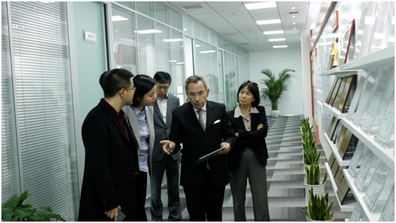 接下來在大家的陪同下,會長先生參觀文香總部。上圖為參觀文香文化長廊。這里展示了文香的著名案例,所獲榮譽獎項以及文香資質,在參觀到資質區域時,會長先生感慨的說道,文香對自身研發實力的要求,以及對專利的重視和保護,具有很強的前瞻性,這是企業走向國際化路程的非常重要的環節。