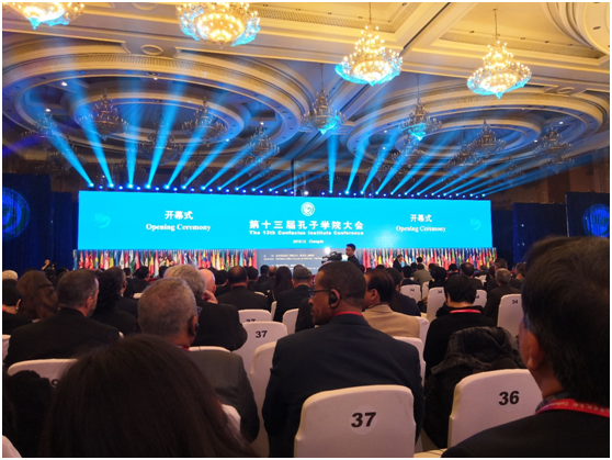 開幕式于4日上午在成都世紀(jì)城國(guó)際會(huì)議中心舉行。由中華人民共和國(guó)教育部部長(zhǎng)、孔子學(xué)院總部理事會(huì)副主席陳寶生主持。