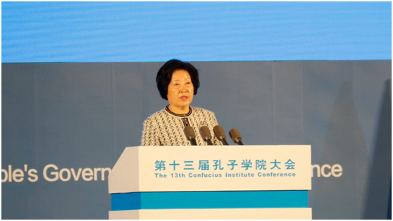 中國(guó)國(guó)務(wù)院副總理、孔子學(xué)院總部理事會(huì)主席孫春蘭發(fā)表主旨演講。孫春蘭總理談到,中國(guó)政府一貫鼓勵(lì)跨文化交流,積極支持中外雙方合作辦好孔子學(xué)院。習(xí)近平主席多次強(qiáng)調(diào),作為中外語言文化交流的窗口和橋梁,孔子學(xué)院屬于中國(guó),也屬于世界。世界各國(guó),從未像今天一樣互聯(lián)互通,而語言是文化最重要的載體,學(xué)習(xí)一門語言,不僅僅是語言本身,我們能從語言本身了解這個(gè)國(guó)家的文化。我們要在未來一直開門辦學(xué),與各國(guó)進(jìn)行教育、科學(xué)、媒體、智庫等多方面的交流合作,相互欣賞,相互尊重,互相理解,共享資源,促進(jìn)各國(guó)的共同發(fā)展。