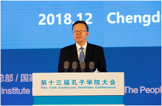 中共四川省省委書記彭清華致辭,他代表省委、省政府向出席大會(huì)的各位嘉賓表示歡迎。他說,孔子學(xué)院在推動(dòng)世界各國(guó)“民心相通”中發(fā)揮著重要作用,越來越成為中外語言文化交流的窗口和橋梁。四川是華夏文明的發(fā)源地之一,有文化的基因和興教的傳統(tǒng)。近年來,我省堅(jiān)持傳承弘揚(yáng)中華優(yōu)秀傳統(tǒng)文化,鼓勵(lì)支持四川學(xué)校在海外建立孔子學(xué)院,以學(xué)院為“媒”、以語言為“橋”,積極推進(jìn)教育對(duì)外開放,深化與世界各國(guó)的交流合作。下一步,我們將一如既往重視支持孔子學(xué)院建設(shè),大力推廣漢語言文化,促進(jìn)各類人才交流交往,推動(dòng)中國(guó)文化、巴蜀文化走出去。