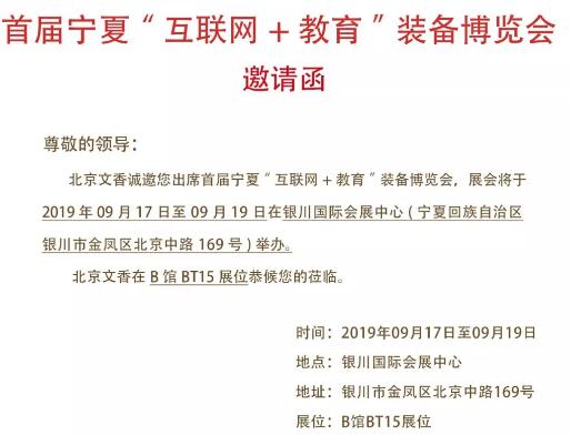 【邀請函】北京文香即將亮相首屆寧夏“互聯網+教育”裝備博覽會