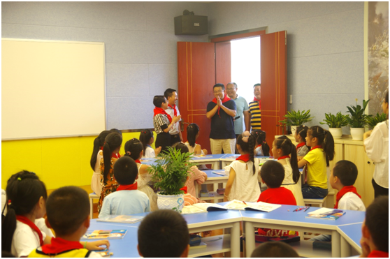 文香董事長朱玉榮、文香華中大區總經理王海平、文香江西區域銷售總監涂敏一行在井岡山市教育體育局局長龍平、井岡山龍市小學校長范鳳英的帶領下參觀龍市小學。在教室里,朱總勉勵各位同學,他希望孩子們積極向上,勤奮博學、進取爭先,掌握扎實的文化知識,全面提高綜合素質,為將來立足社會、奉獻社會打下扎實的基礎取得更好的成績。