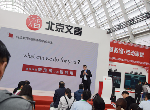 本屆展示會,北京文香攜三代智慧黑板、4k交互平板、純觸控虛擬演播系統(tǒng)亮相,并展示了嵌入式錄播系列產(chǎn)品,圖像跟蹤系列產(chǎn)品,便攜錄播系列產(chǎn)品,智慧教室解決方案、專遞課堂解決方案等。