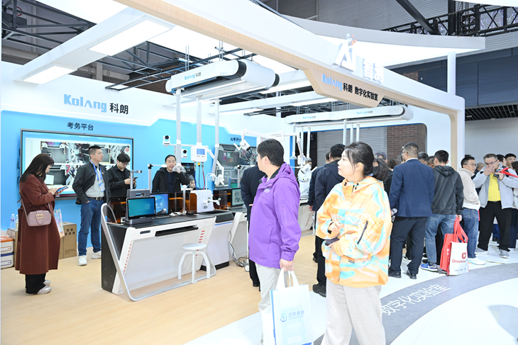 展區展示融合虛擬與現實的實訓環境。電商實訓區域配備智能摳像、三維場景系統,完整呈現電商直播全流程;工業實訓區域通過移動實訓設備與多鏡頭采集,實現操作過程的精確評估。兩大模塊協同運作,培育適應數字時代的復合型人才。