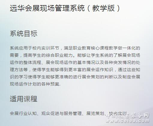 適用課程 會展行業認知、觀眾促進與服務管理、展覽策劃、校內實訓. |