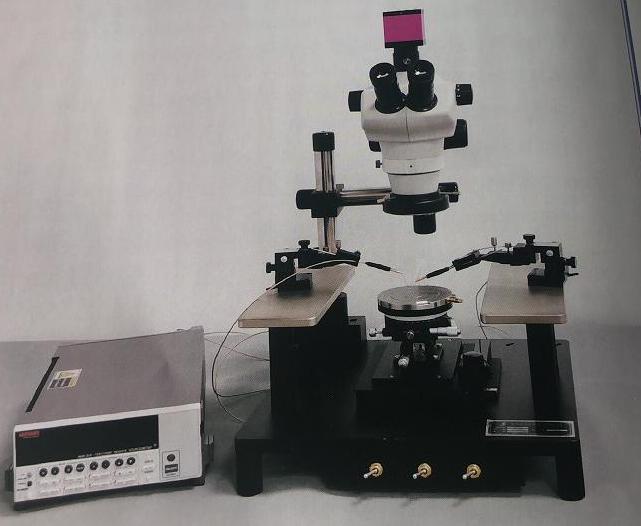 型號 技術參數 MPS-4 MPS-6 臺 體 尺寸 4英寸 6英寸 水平旋轉 可360度旋轉,可微調15度,精度0.1度,帶角度鎖死裝置 X-Y移動行程 2英寸*3英寸 X-Y移動精度 10微米 樣品固定 真空吸附,中心吸附孔,多圈吸附環 針座平臺 左右各一個針座平臺,最多可放置6個探針座 背電極測試 樣品臺電學獨立懸空,4mm插孔可接背電極 顯 微 鏡 顯微鏡類型 單筒顯微鏡/體視顯微鏡 放大倍率 16X-200X 移動行程 水平方向繞立柱360度旋轉,Z軸50.8mm 光源 外置LED無極調節亮度環形光源 CCD 200萬像素/500萬像素/1200萬像素 探 針 座 X-Y-Z移動行程 12mm*12mm*12mm 移動精度 10微米/2微米/0.7微米/0.5微米 吸附方式 磁力吸附/真空吸附 探 針 夾 具 線纜 同軸線/三軸線 漏電精度 10pA/100fA/10fA 固定探針 彈簧固定/管狀固定 接頭類型 BNC/三軸/香蕉頭/鱷魚夾/接線端子 探 針 針尖直徑 0.2微米/1微米/2微米/5微米/10微米/20微米 材質 鎢鋼/鈹銅 外形 400mm長*380mm寬*500mm高 重量 約20千克 可選附件 加熱臺 屏蔽箱 顯示器 光學平臺 轉接頭 鍍金卡盤 射頻測試配件 光電測試配件 根據客戶要求定制 |