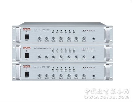 產品詳細介紹型號 SPD-6120F SPD-6240F SPD-350F 額定輸出功率 120W 240W 350W 輸出方式 CH1~CH6(0V,100V)定壓輸出;70V、100V定壓輸出;定阻(4Ω~16Ω)輸出 輸入 MIC1.2.3:600Ω2.0mv,AUX1,2: 15KΩ150mv不平衡 總諧波失真 小于0.1%at 1KHz,1/3 rated power 電源 ~220V/50HZ 尺寸 482X448X88mm 凈重 13 15 17 |