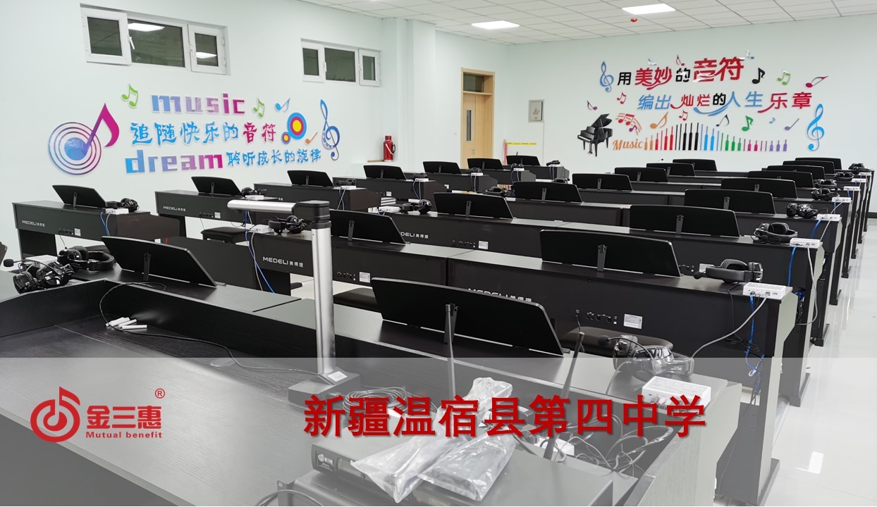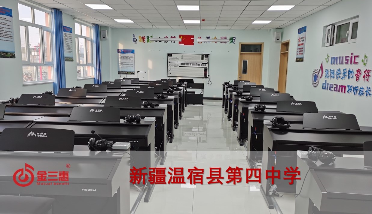 新疆溫宿縣第四中學的電鋼琴教室音樂教室正式開始使用,本校數字化音樂教室由北京金三惠科技有限公司負責提供、安裝、培訓。