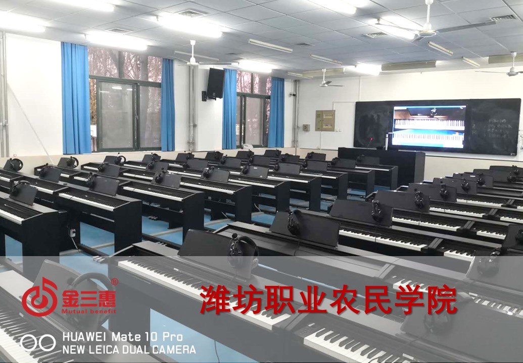 濰坊職業農民學院的電鋼琴教室正式開始使用,本校數字化音樂教室由北京金三惠科技有限公司負責提供、安裝、培訓。