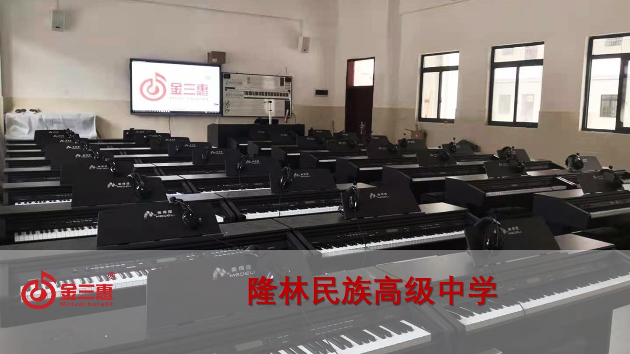 隆林民族高級中學的電鋼琴教室正式開始使用,本校數字化音樂教室由北京金三惠科技有限公司負責提供、安裝、培訓。