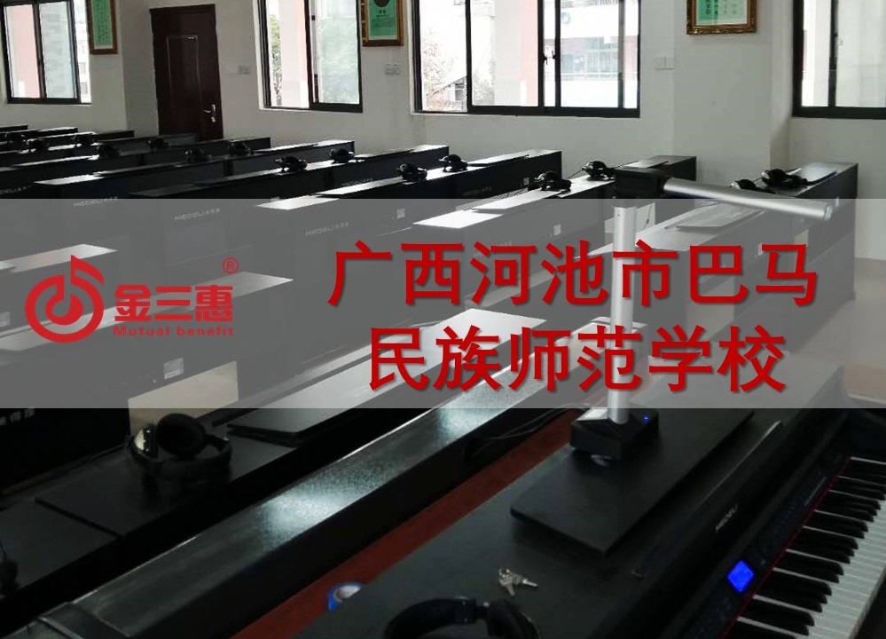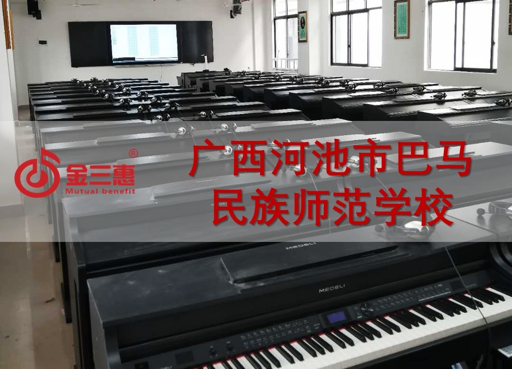 廣西河池市巴馬民族師范學校正式使用數字化電鋼琴教室和聲樂教室,兩間教室均由北京金三惠科技有限公司負責提供產品、安裝及培訓。
