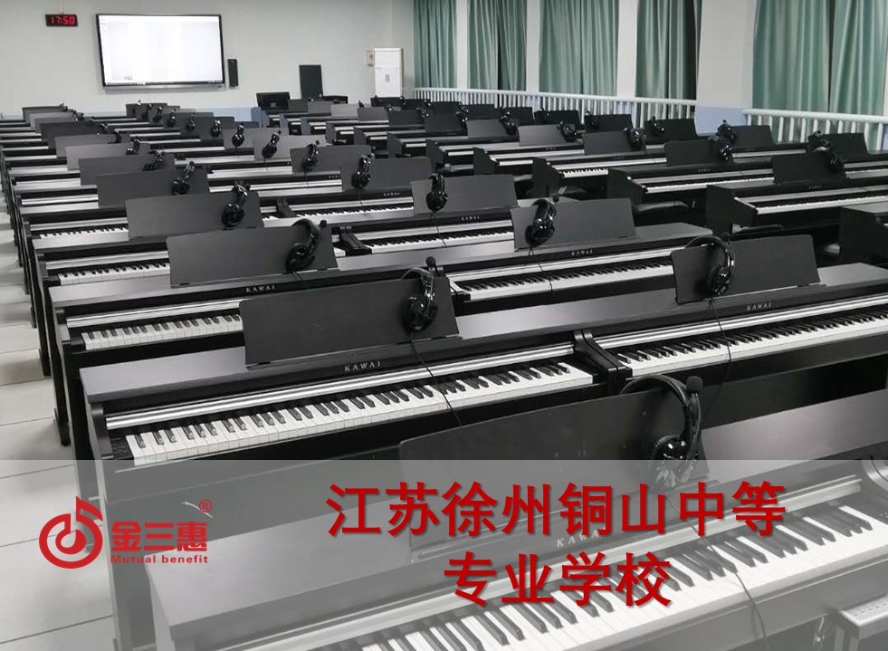 江蘇徐州銅山中等專業學校的鋼琴教室正式開始使用,本校電鋼琴教室由北京金三惠科技有限公司負責提供、安裝、培訓。