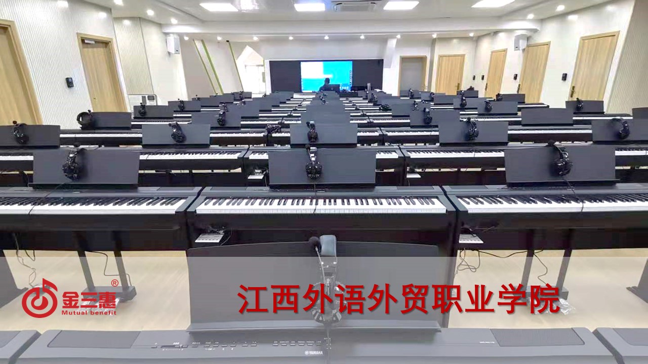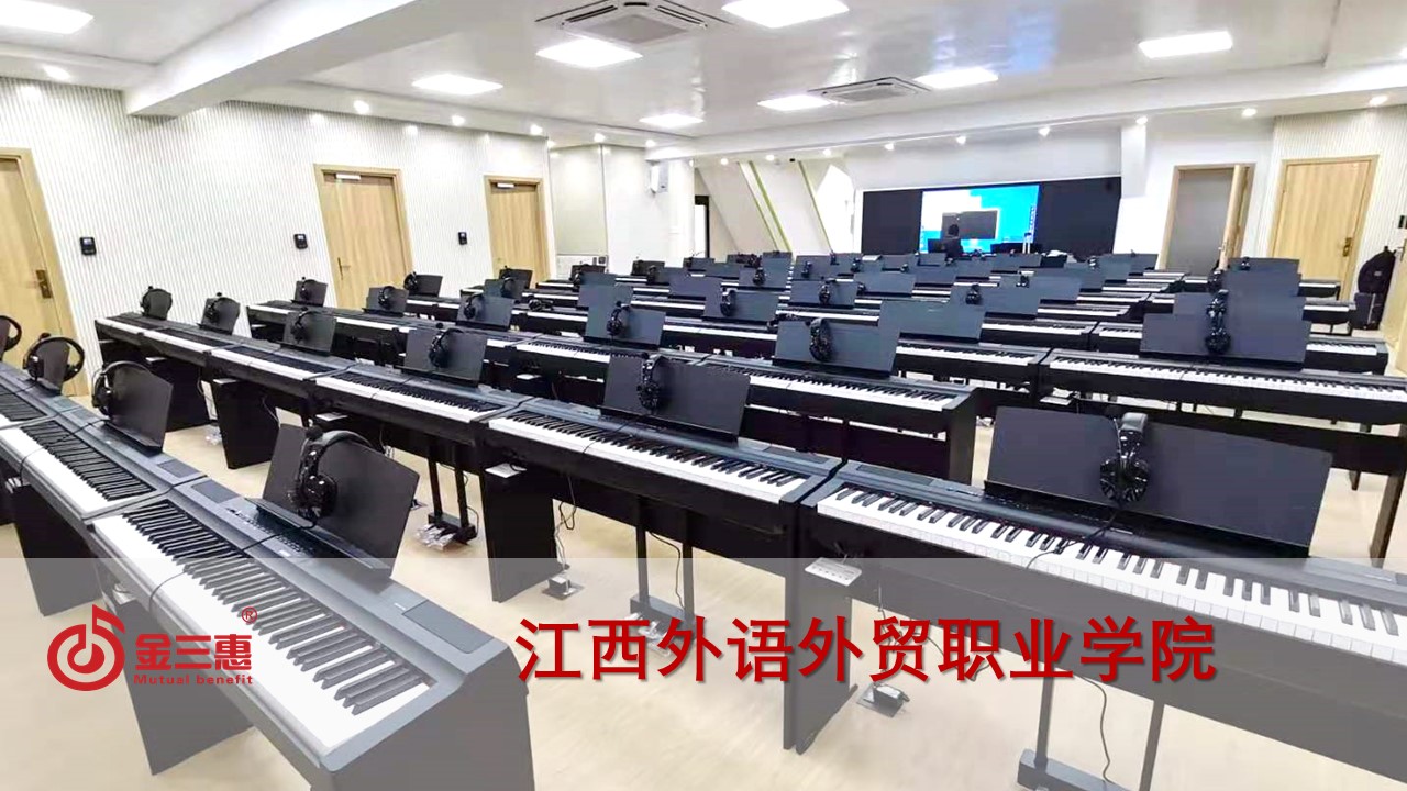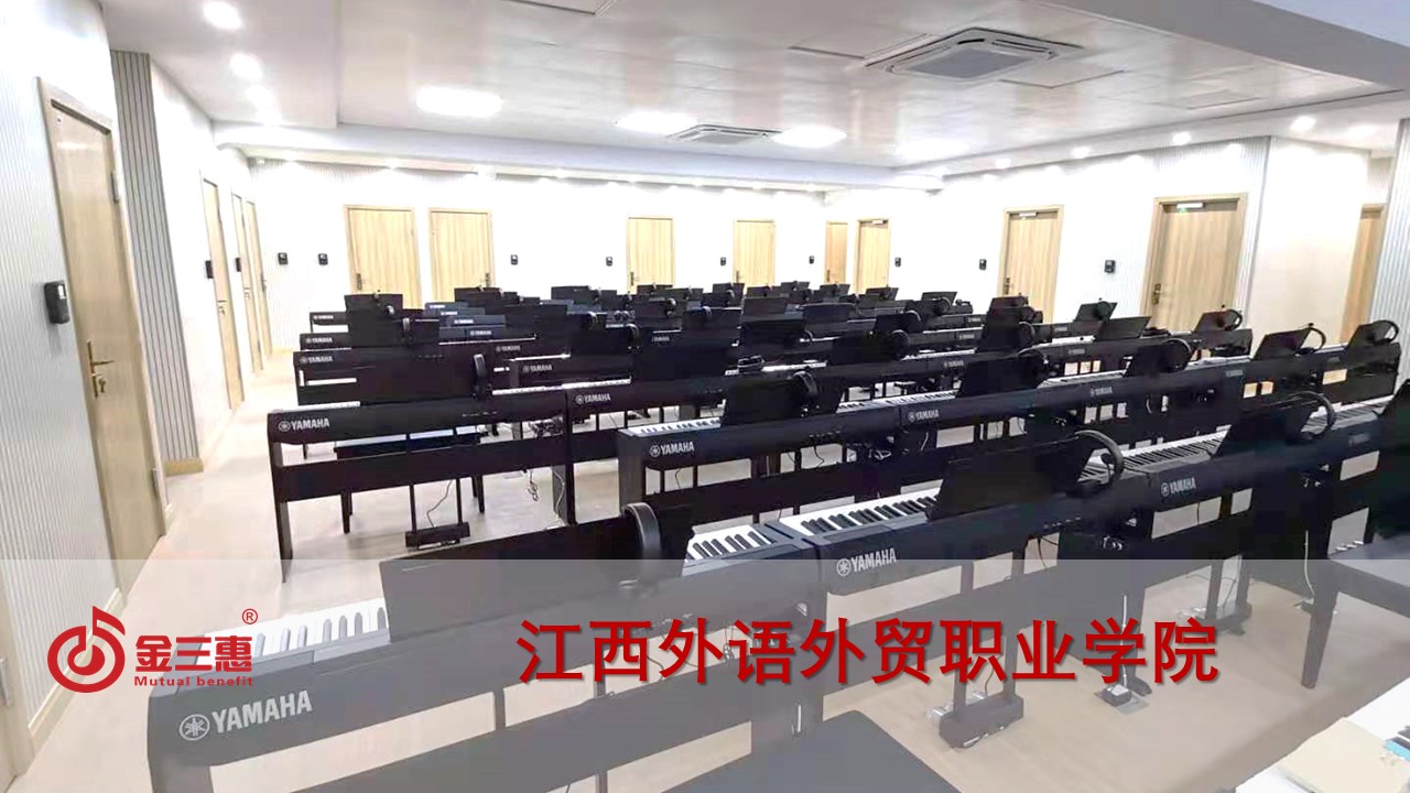 江西外語外貿職業學院的電鋼琴教室正式開始使用,本校數字化音樂教室由北京金三惠科技有限公司負責提供、安裝、培訓。