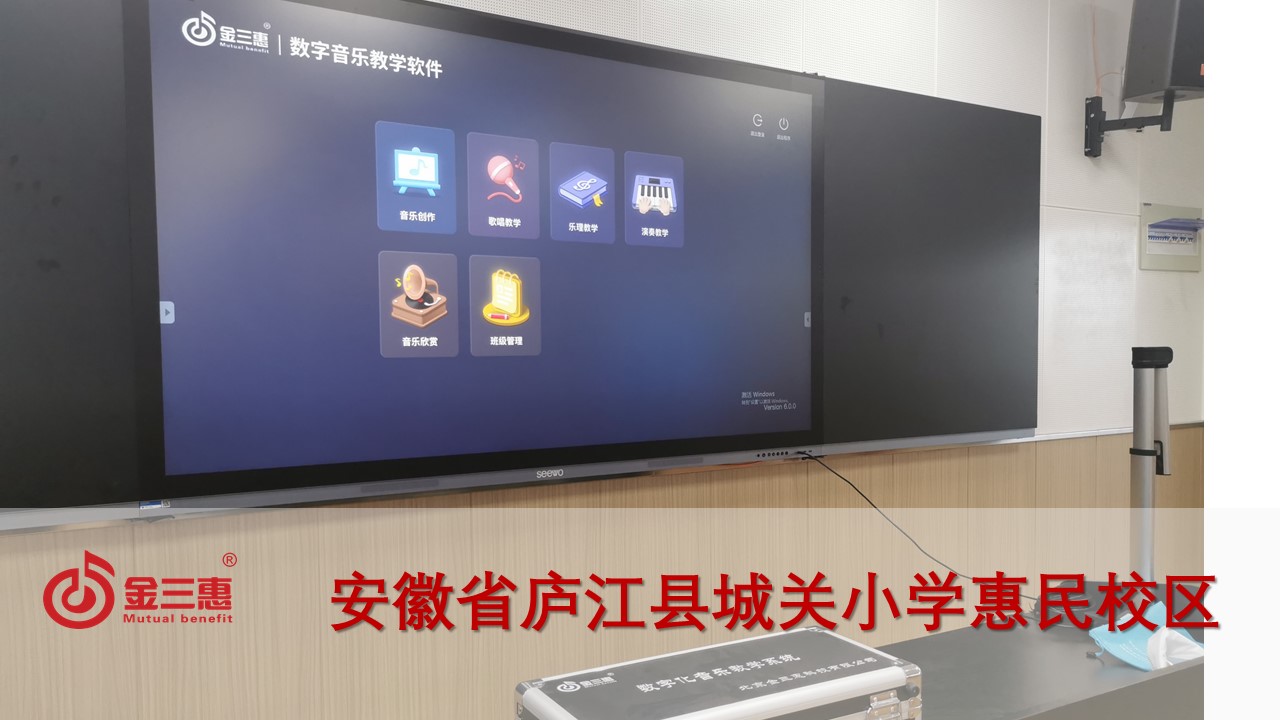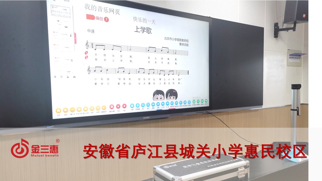 安徽省廬江縣城關小學惠民校區的數字音樂常規教室正式開始使用,本校數字化音樂教室由北京金三惠科技有限公司負責提供、安裝、培訓。
