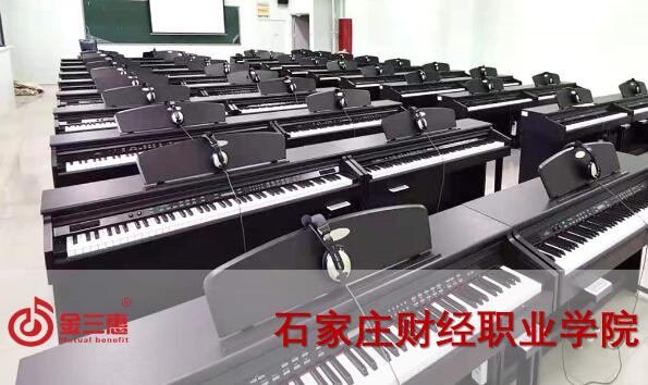 石家莊財經職業學院的數字音樂電鋼琴教室正式開始使用,本校電鋼琴教室由北京金三惠科技有限公司負責提供、安裝、培訓。